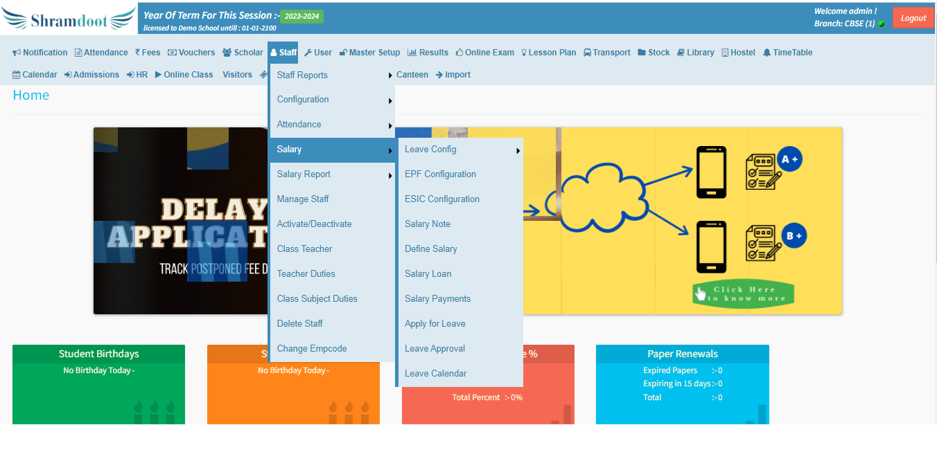 Attendance Management: Efficiently handle staff attendance by inputting data into the system or importing it from Excel. Excel import is particularly useful for integrating with biometric or other attendance tracking devices.